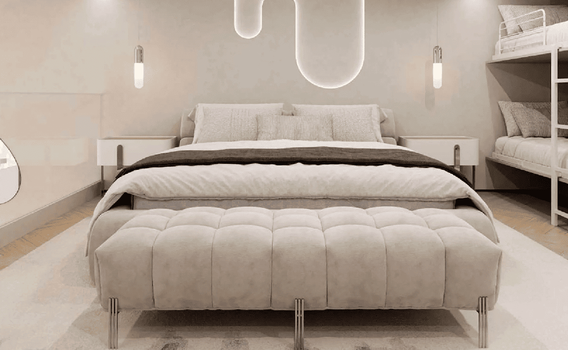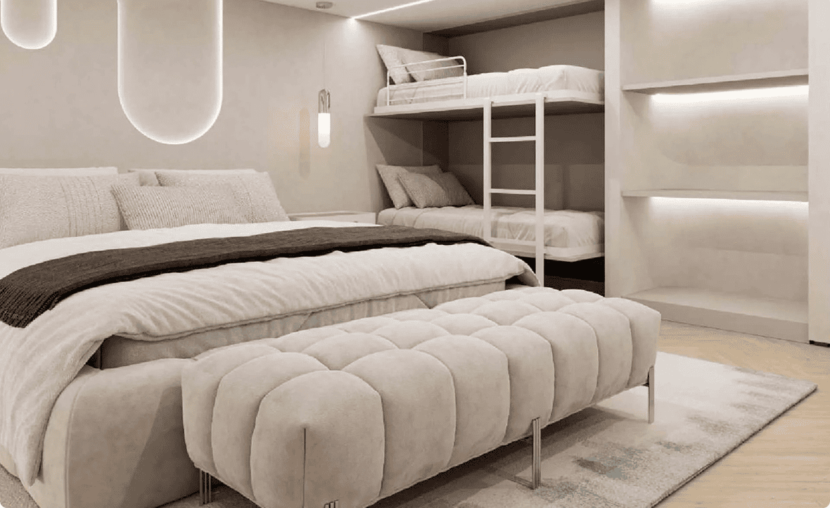 На третьем и четвёртом этажах — апарт-комплекс из более чем 160 апартаментов.