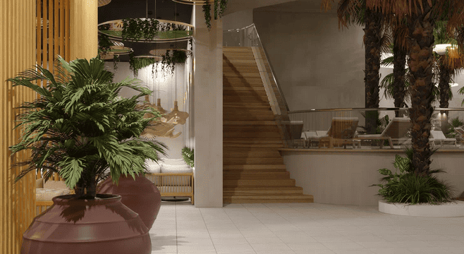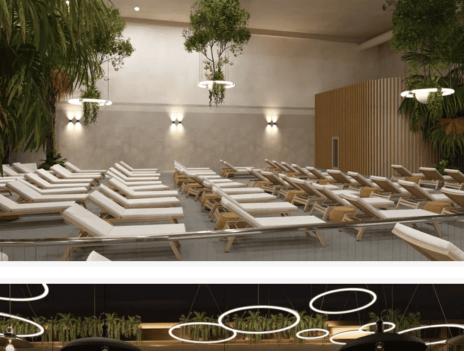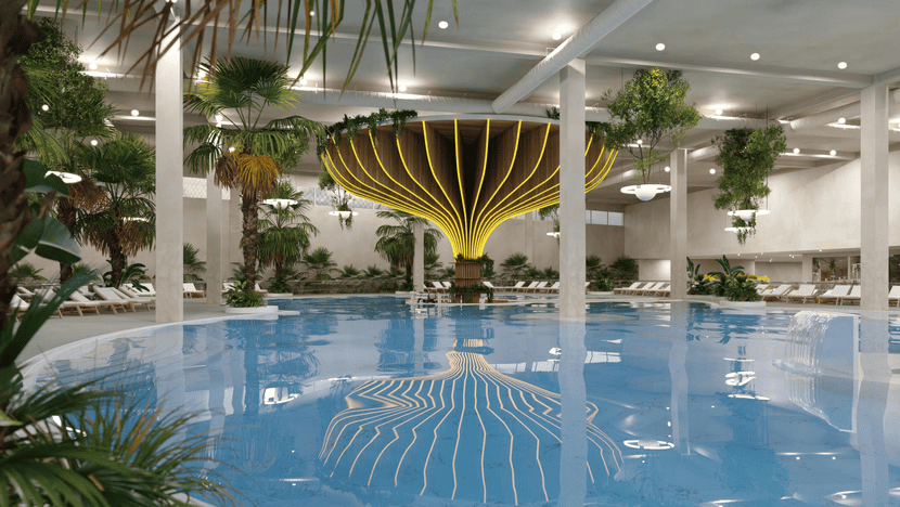 На первом этаже — крупнейший на Урале термальный бассейн площадью 1250 м² и зоны отдыха;