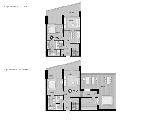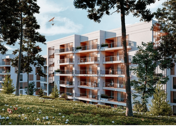 Жилой комплекс представляет собой 2 блока апартаментов с террасированной структурой.