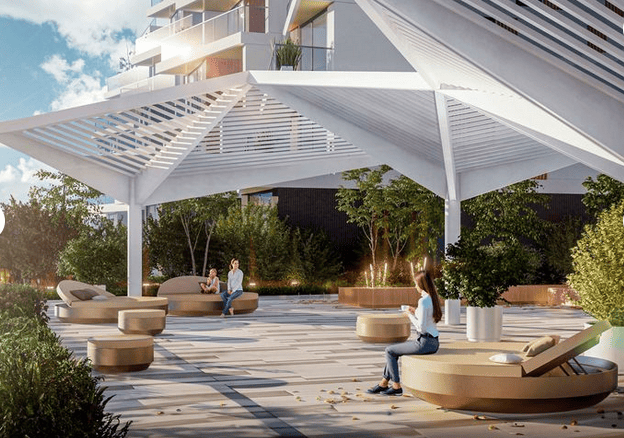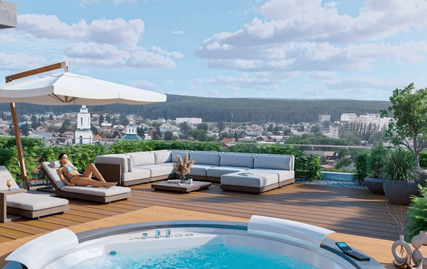 Жители могут наслаждаться уединением в своих приватных джакузи или пользоваться разнообразными удобствами на крыше стилобата, включая сквер с лаунджевой мебелью для отдыха в клубной атмосфере.