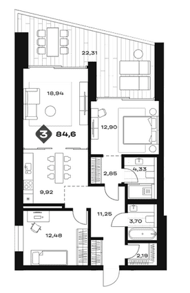 Площадь от 84.6 м2