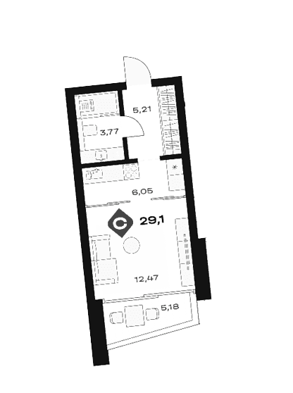 Площадь от 30.8 м2